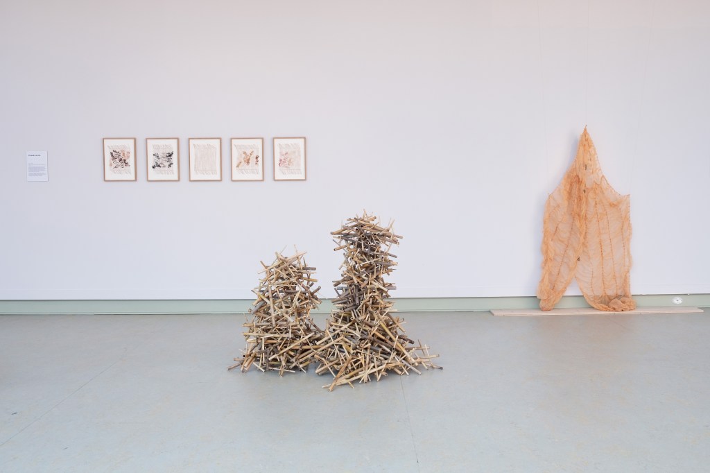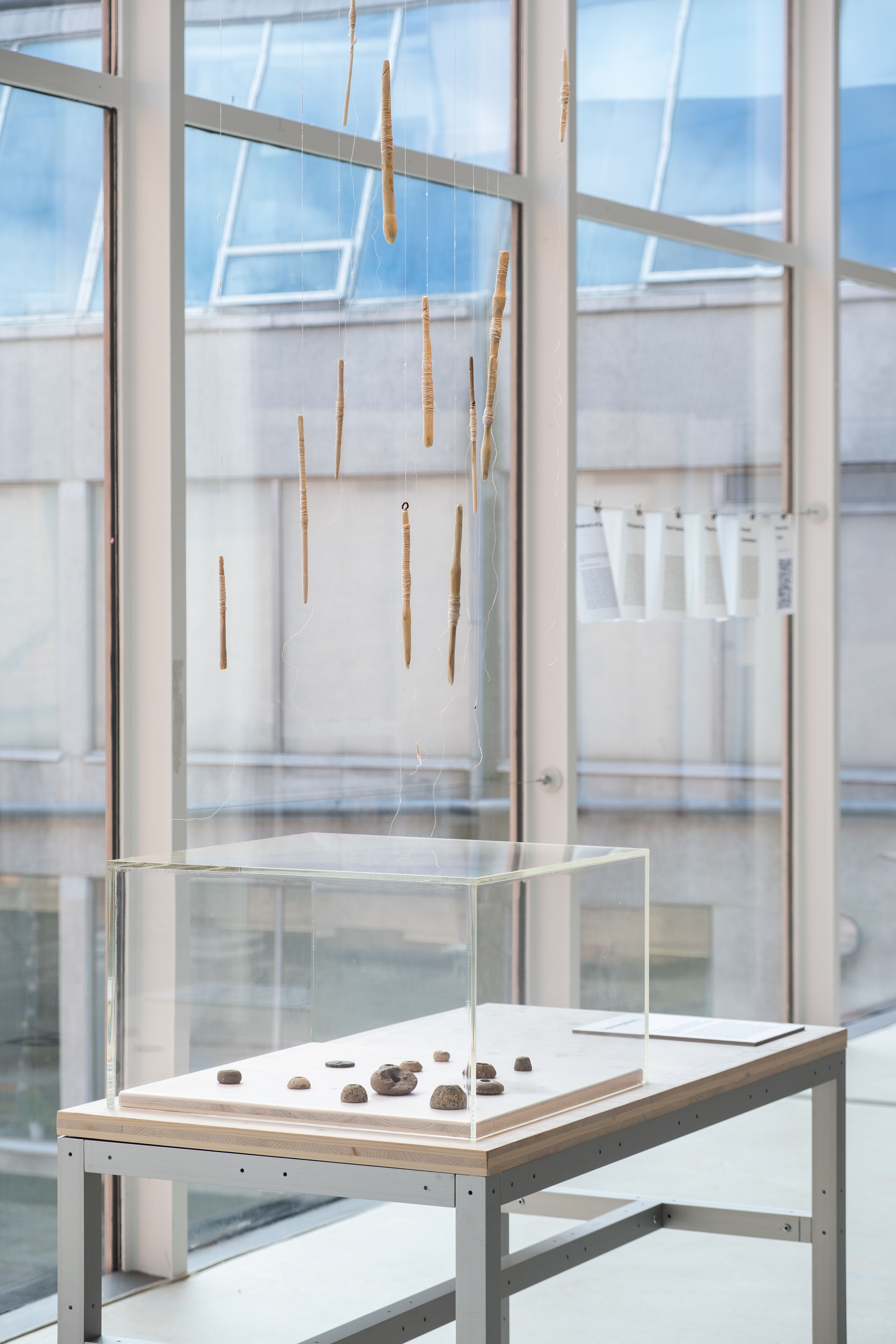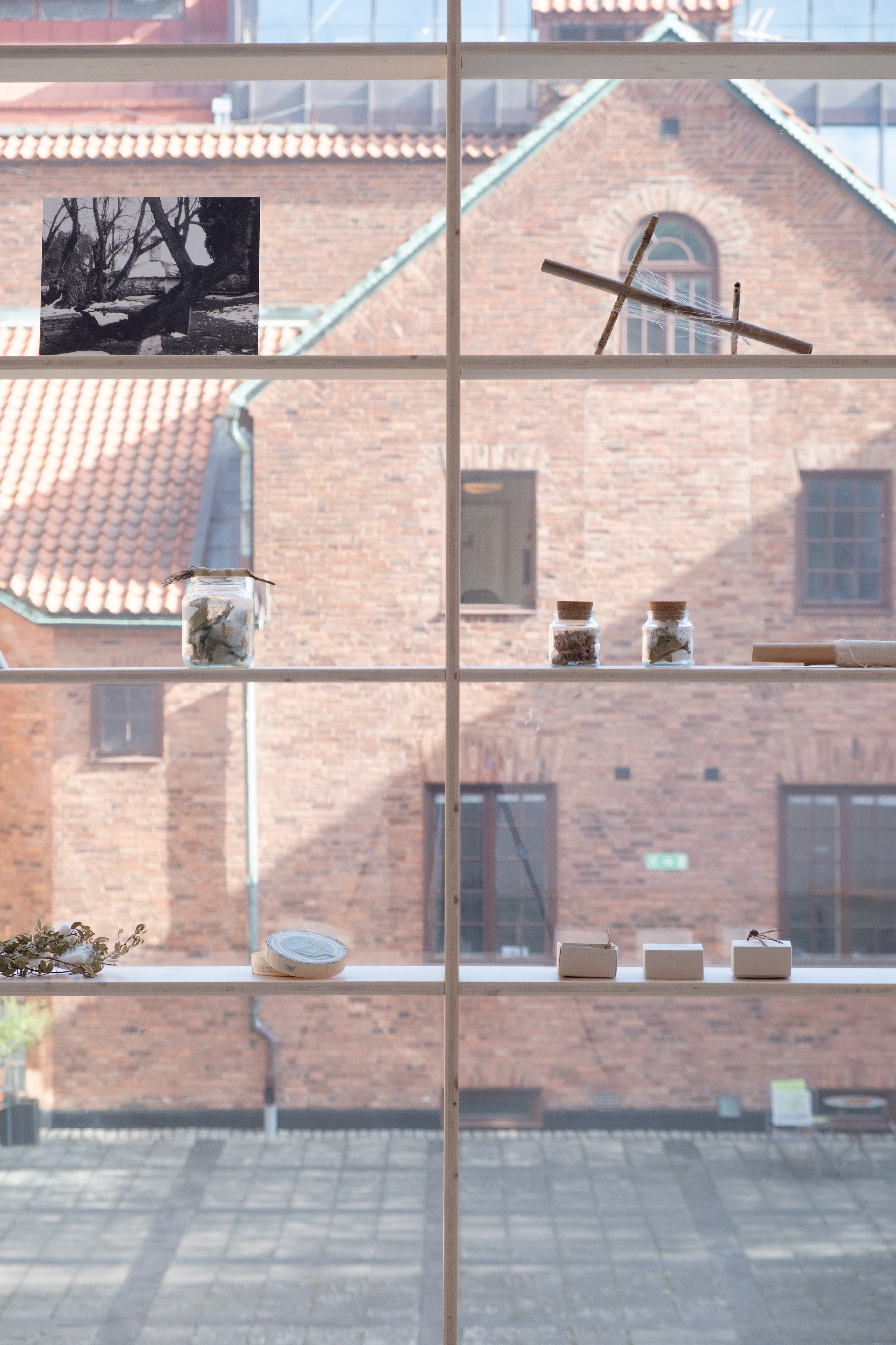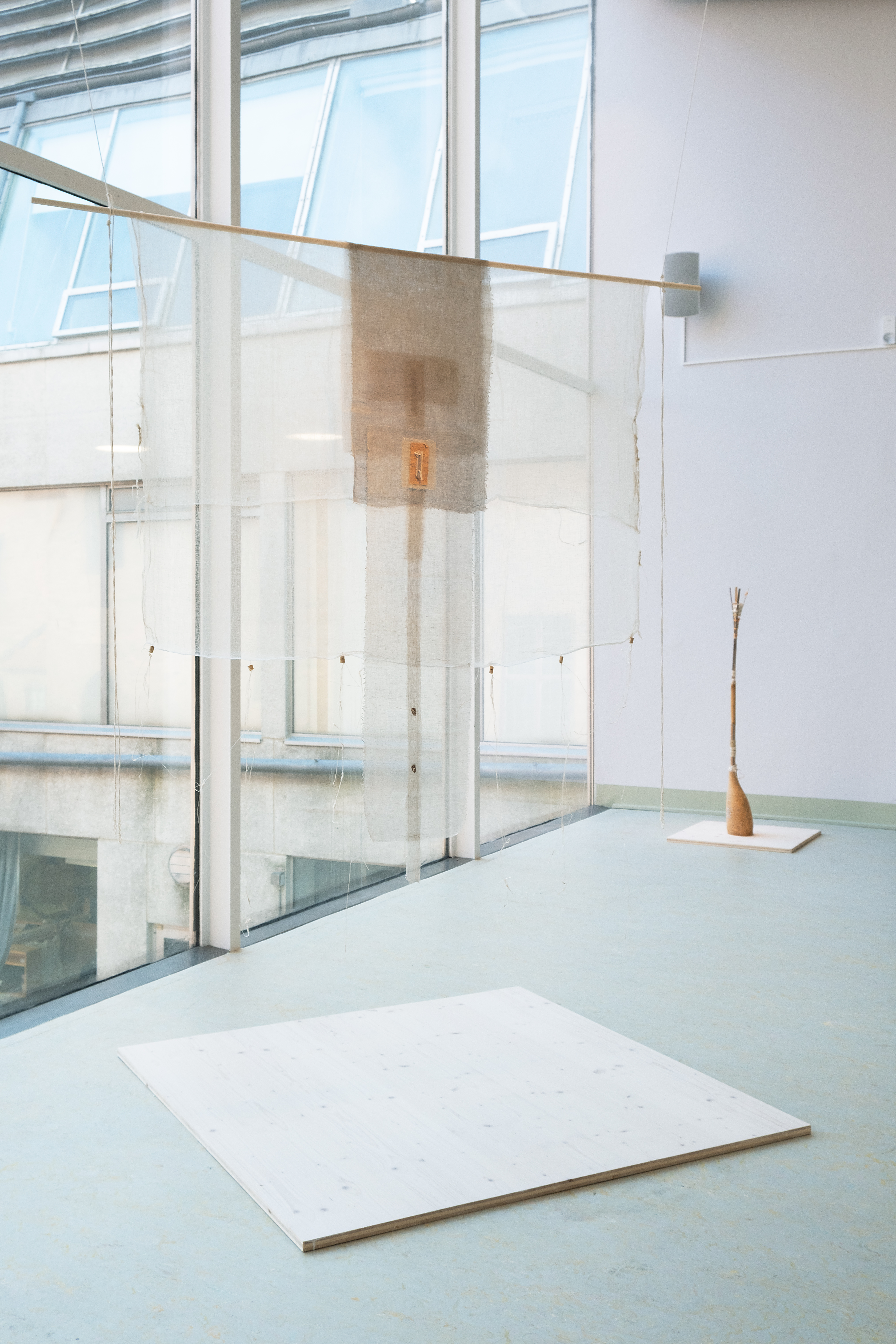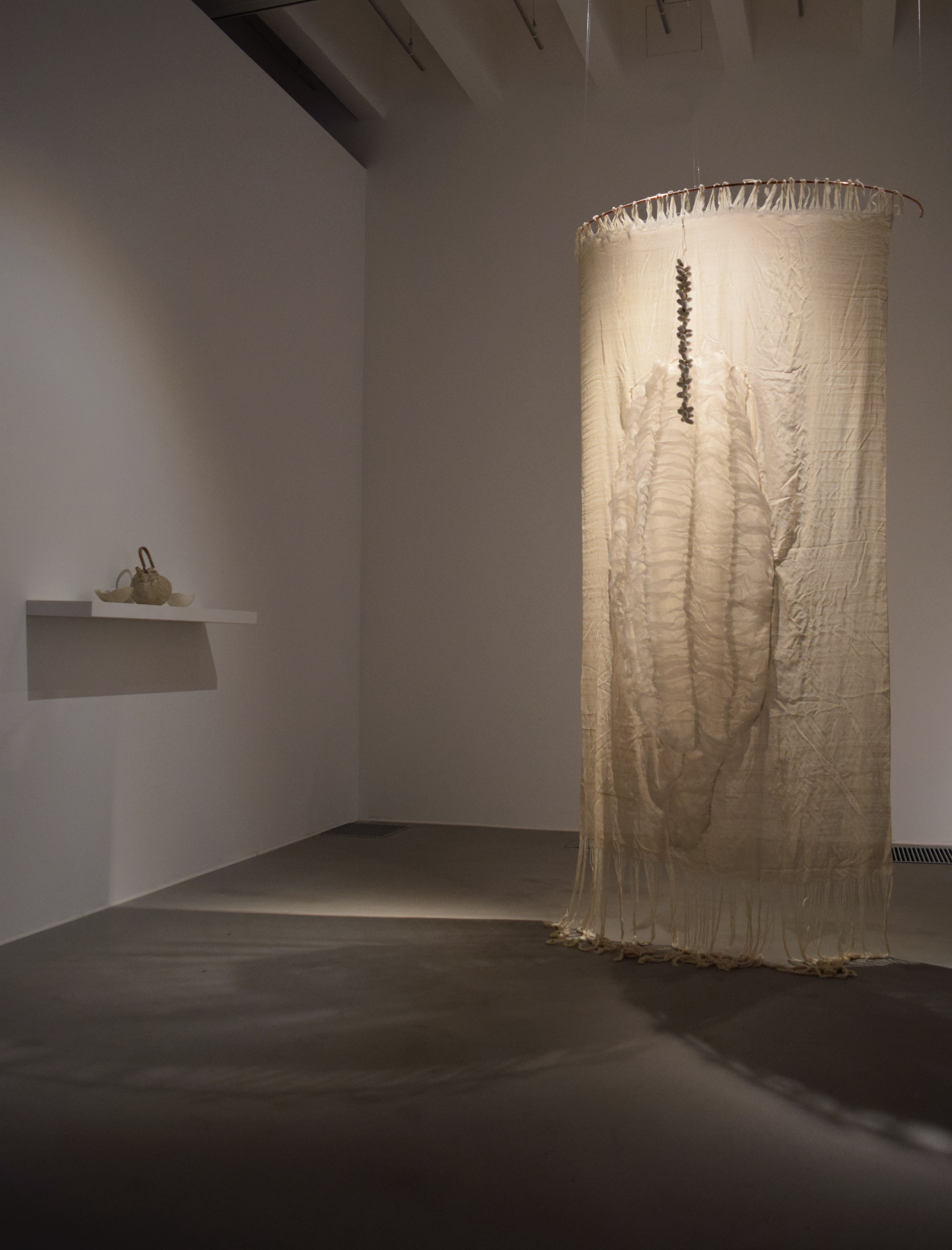 The exhibition Morus, at Galleri Apoteket in Roma Kungsgård, presents a number of individual artworks, as reflections on the themes of metamorphose, moulting, silk mythology and ceremonies of change. Roma Kungsgård is a site where mulberry trees were grown in orangeries during the 18th century. The gallery space used to be a pharmacy, which links the artists to the women who used herbs and threads with medical purposes, and the accusations against them during the witch trials in Visby 1705.